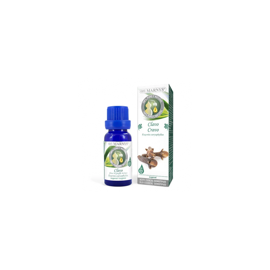 Aceite Esencial De Clavo de Marnys obtenido por destilación por arrastre de vapor de la flor. Presenta un olor dulce especiado.