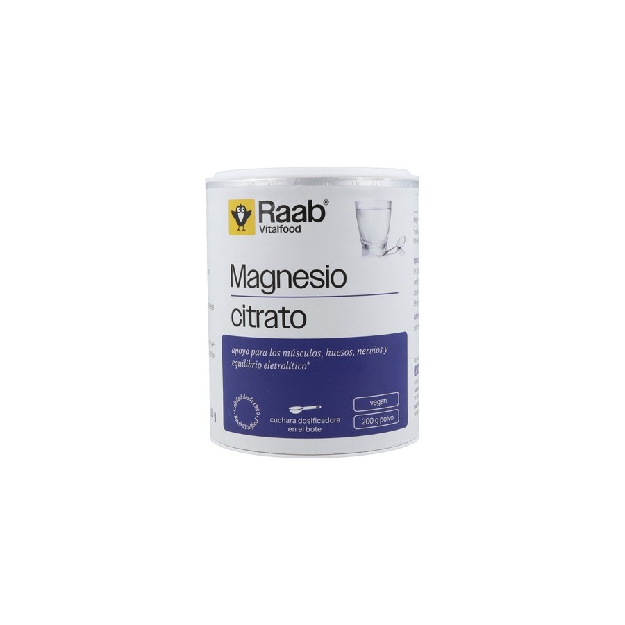 El Citrato de Magnesio de Raab es un complemento alimenticio elaborado con magnesio que proporciona apoyo para los músculos, huesos, el sistema nervioso y para el equilibrio electrolítico.