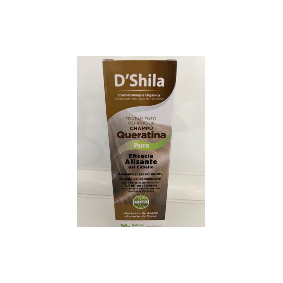 D'Shila Champú Queratina 125 ml. Tratamiento reparador. Eficacia Alisante del cabello. Aumenta el grosor un 39%.