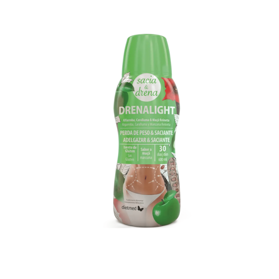 Drenalight Sacia & Drena de Dietmed es un complemento dietético elaborado con diferentes ingredientes como la algarrobo, caramulla y la manzana reineta, que habitualmente son utilizados como coadyuvantes en dietas de pérdida de volumen. Es un producto con una capacidad muy positiva para ayudar a la pérdida de peso y volumen.