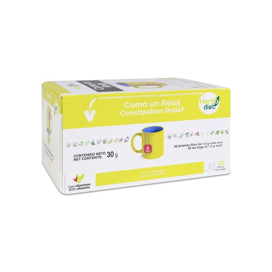 Herbodiet Como un Reloj 20 Infusiones. Indicado para facilitar el transito intestinal. Ideal para el control del peso. Infusión enriquecida con vitaminas. Al tratarse de ingredientes naturales pueden aparecer ligeros cambios de aspecto o color que no afectan a la calidad del producto.
