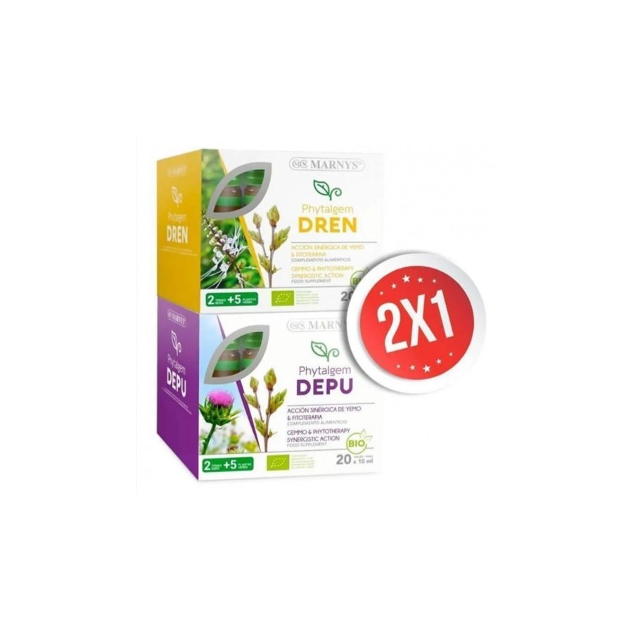 MARNYS® Phytalgem Depu constituye una magnífica opción para el organismo ya que está elaborado con extractos de plantas y yemas con propiedades purificadoras debido a los brotes jóvenes y de origen orgánico de enebro y romero, el extracto seco de cardo mariano, y los concentrados fluidos de diente de león y alcachofa.